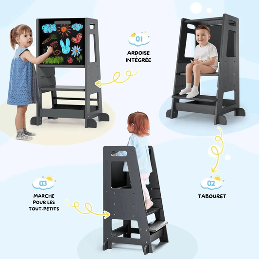 La tour d’observation qui permet à votre enfant de participer, apprendre et grandir à vos côtés.